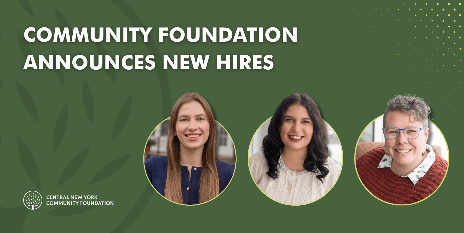 2026 年 3 月 – 纽约州中部社区基金会聘请丽贝卡-巴拉拉(Rebecca Balara )担任宣传经理,聘请伊兹-福斯(Izzy Foss )担任项目助理 ,聘请凯特-唐斯(Kate Downes )担任项目经理。